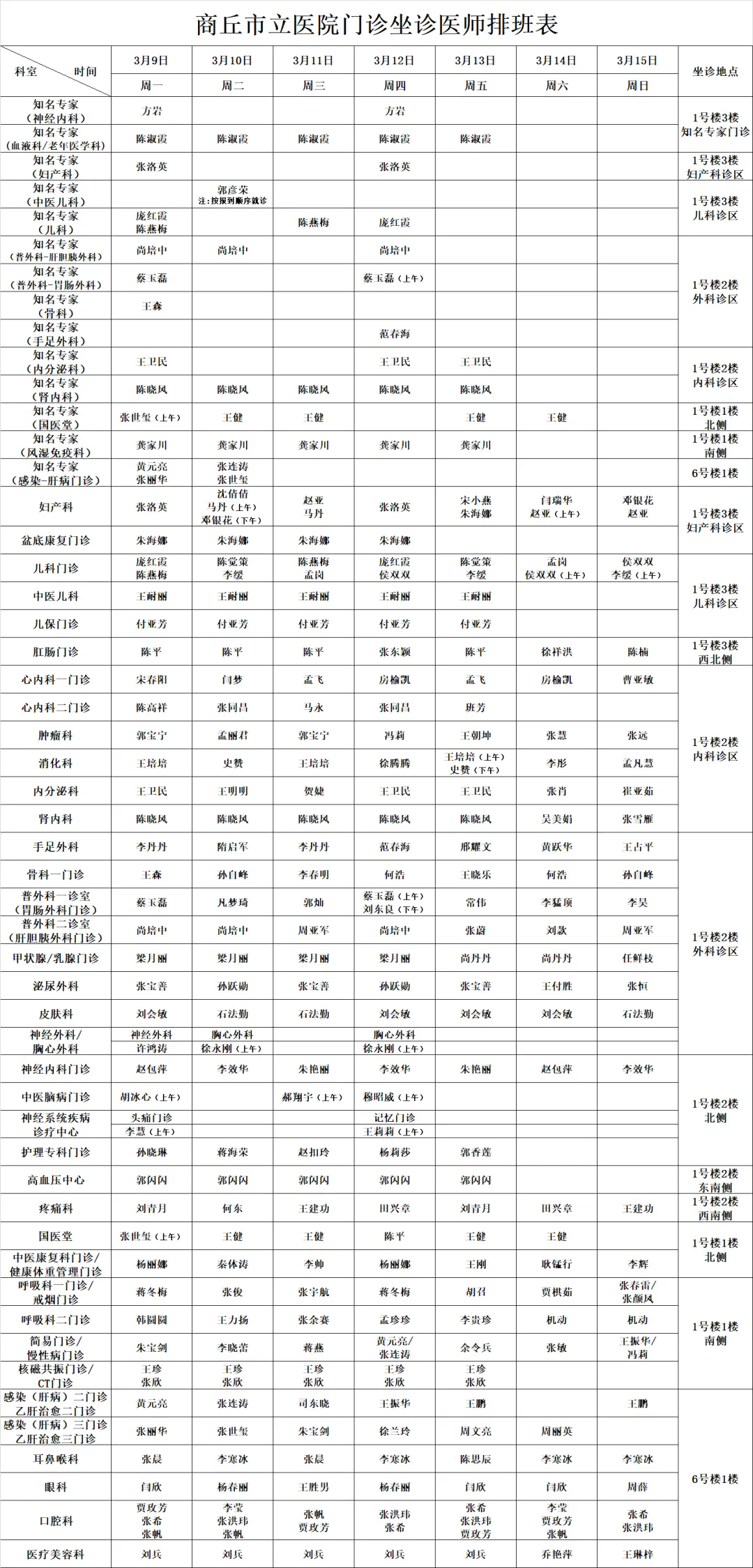 专家坐诊表