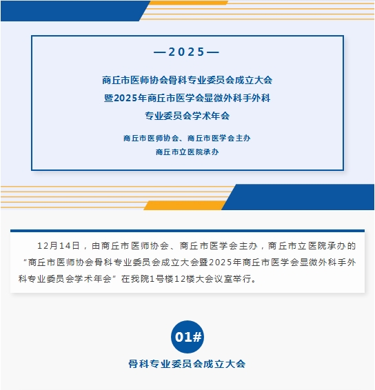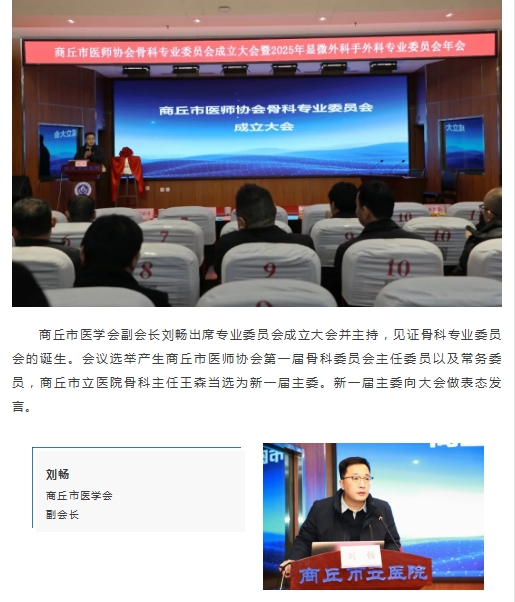 商丘市医师协会骨科专业委员会成立大会暨2025年商丘市医学会显微外科手外科专业委员会学术年会在我院成功召开